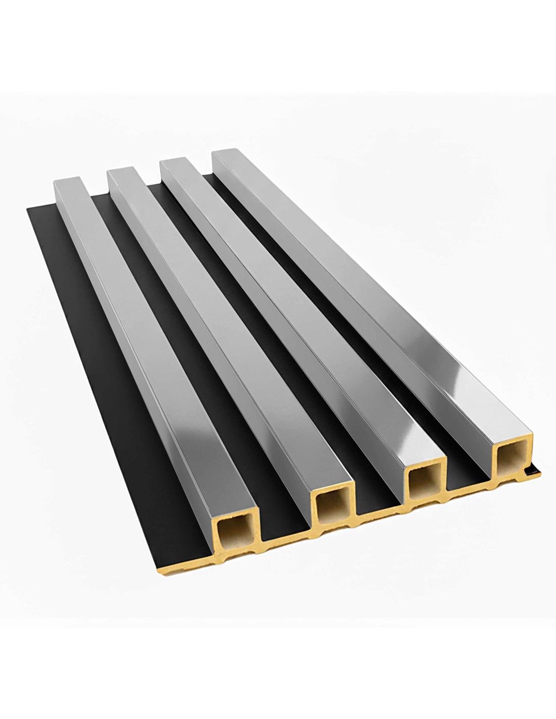 Diseño vertical en acabado cromo plata que introduce brillo controlado, orden visual y una estética contemporánea muy definida. Una solución decorativa pensada para crear impacto sin excesos y con una imagen limpia y actual.