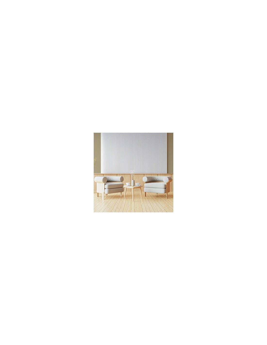 La palillería blanca mate aporta un acabado limpio y moderno, con un blanco uniforme sin brillos que transmite orden y elegancia. Gracias a su diseño en listones verticales, crea profundidad visual y una pared con textura decorativa sutil, perfecta para un estilo contemporáneo y equilibrado.