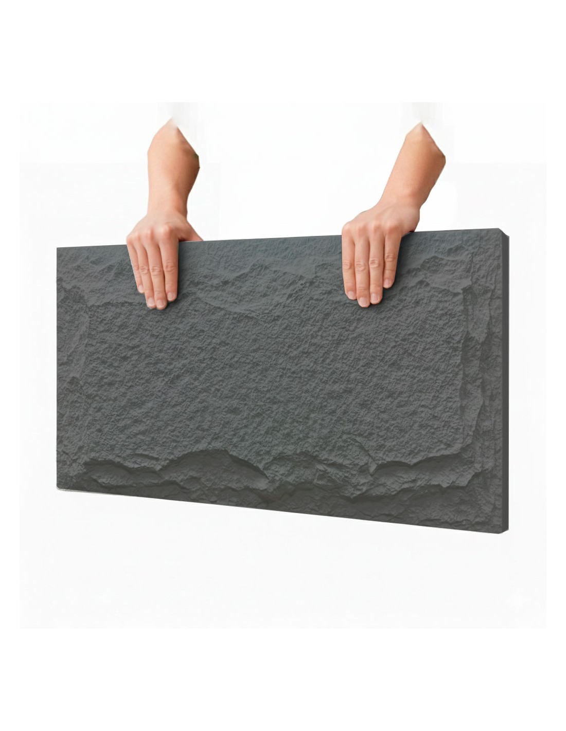 Cada unidad del revestimiento piedra PU mide 120 cm de ancho por 60 cm de alto, lo que permite cubrir grandes superficies de forma rápida y con menos juntas visibles.