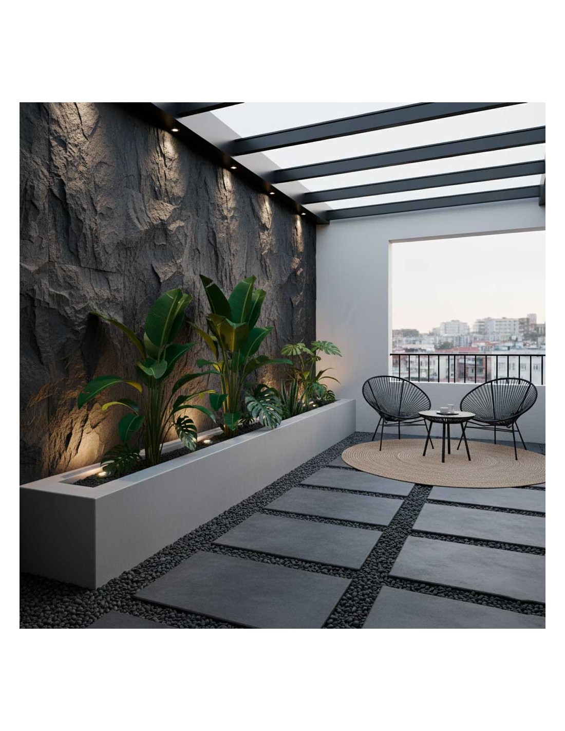 La piedra pu roca gris está diseñada para renovar espacios exteriores con un estilo más moderno y actual. Su relieve rocoso aporta profundidad y realismo, creando un acabado tipo piedra natural que transforma por completo fachadas, paredes perimetrales y zonas de entrada.