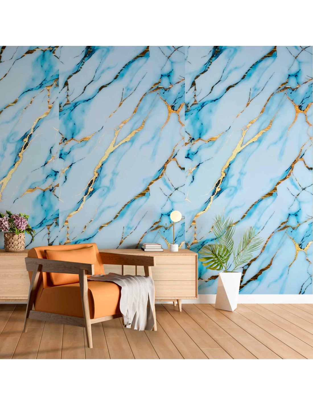 Una base azul clara inspirada en tonos celestes se combina con vetas de oro holográfico que reflejan la luz con destellos cambiantes. El resultado es un acabado luminoso, elegante y muy decorativo, ideal para aportar frescura y sofisticación a cualquier interior.
