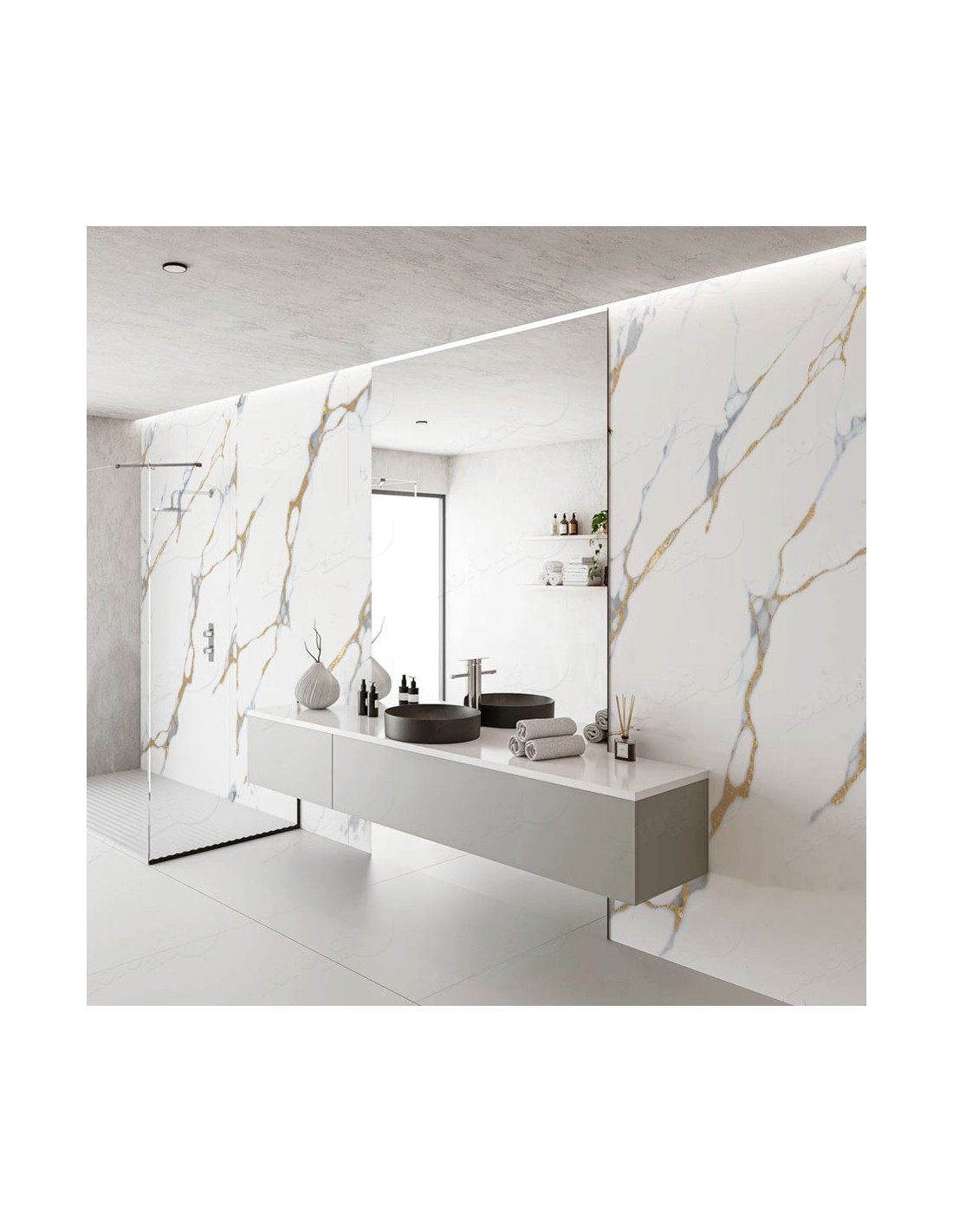 Con sus medidas de 260 x 122 cm, esta placa ofrece una gran superficie continua, facilitando la instalación y reduciendo juntas o uniones visibles. Su espesor fino permite una aplicación limpia sobre paredes, mobiliario o paneles decorativos. Es un material ligero y manejable, pensado para interioristas, decoradores y profesionales del sector que buscan resultados estéticos impecables sin necesidad de recurrir al vidrio o materiales más frágiles.