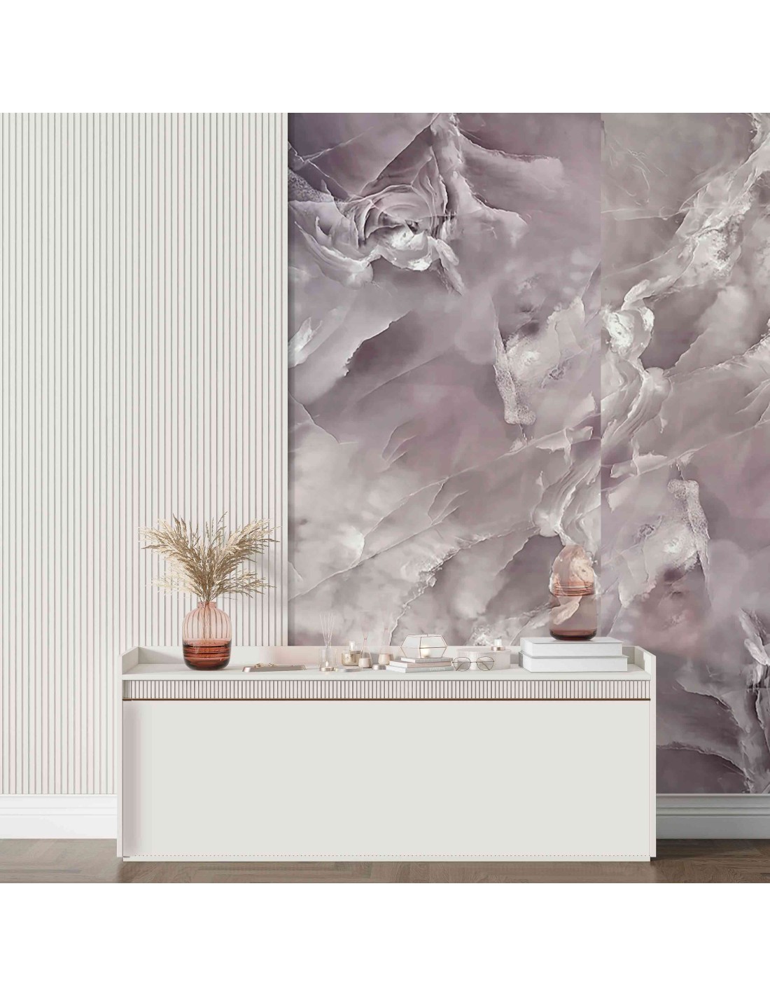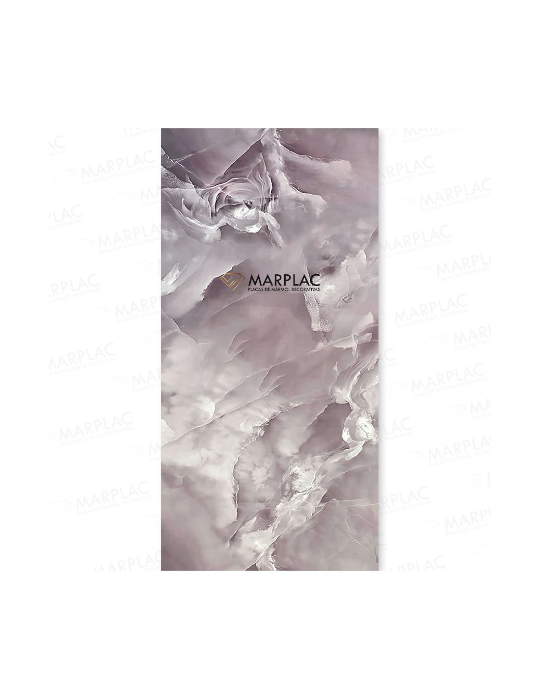 La placa decorativa Neblina Lila presenta una estética etérea y ligera, inspirada en vetas suaves y transiciones delicadas que recuerdan a superficies minerales pulidas. Su tonalidad lila clara aporta serenidad visual y una sensación de equilibrio muy agradable, ideal para interiores donde se busca armonía y sofisticación sin excesos.