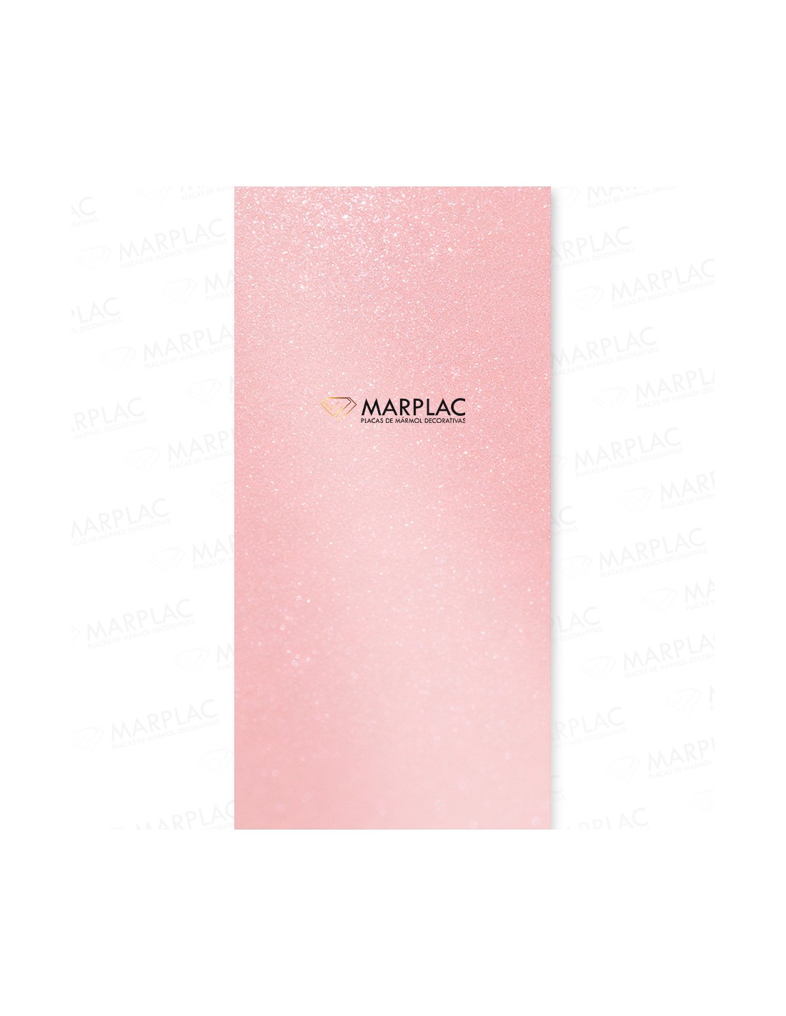 La placa Rosa Perlado se caracteriza por un acabado metalizado en tono rosado que incorpora partículas finas brillantes. Estos pequeños destellos generan un efecto visual dinámico que varía según la luz, aportando un acabado llamativo sin resultar excesivo.